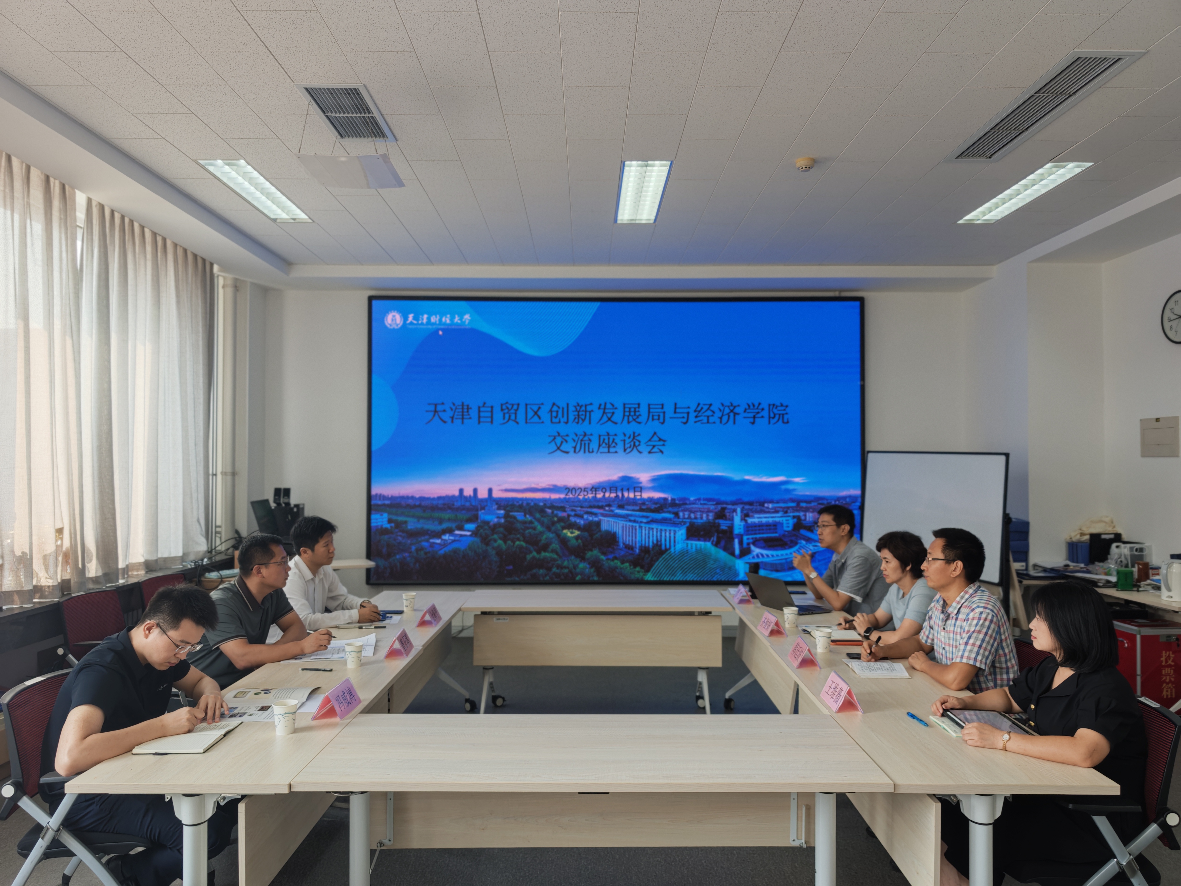 为贯彻落实习近平总书记视察天津重要讲话精神,充分发挥政产学研融合优势更好地服务天津市高质量发展“十项行动”,2025年9月11日天津自贸区创新发展局副局长曹正清带队,天津自贸区创新发展局政策研究中心副主任(主持工作)金海平、天津自贸区创新发展局政策研究中心主管冯威博一行到经济学院进行调研座谈,双方就政产学研互动、提高咨政水平和课题合作等事宜进行了广泛而充分的交流。