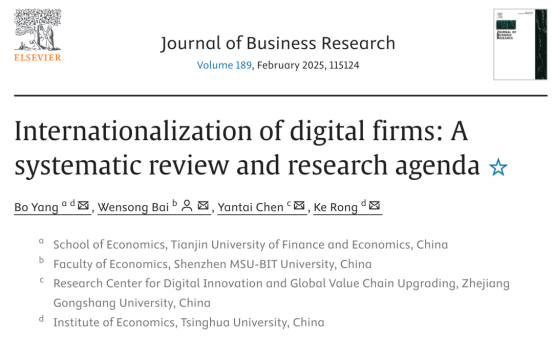我院杨勃副教授在国际权威期刊Journal of Business Research(ABS三星)以第一作者身份发表学术论文Internationalization of digital firms:A systematic review and research agenda。