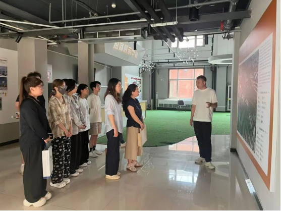 活动伊始,在二次方产业园负责人陈文龙带领下,师生一行首站参观园区规划展示中心。作为全国首家聚焦二手商品流通产业的电商产业园,园区汇聚奢侈品、3C数码等领域头部企业,陈经理重点介绍了园区致力构建线上交易、线下交流的新型电商产业示范区,推动产业聚合发展的功能定位,同时详解园区作为全国二手商品跨境电商交易集散地,已形成检测鉴定、交易流通等全产业链生态,让师生直观感受园区在推动地区经济转型与升级过程中的创新与活力。